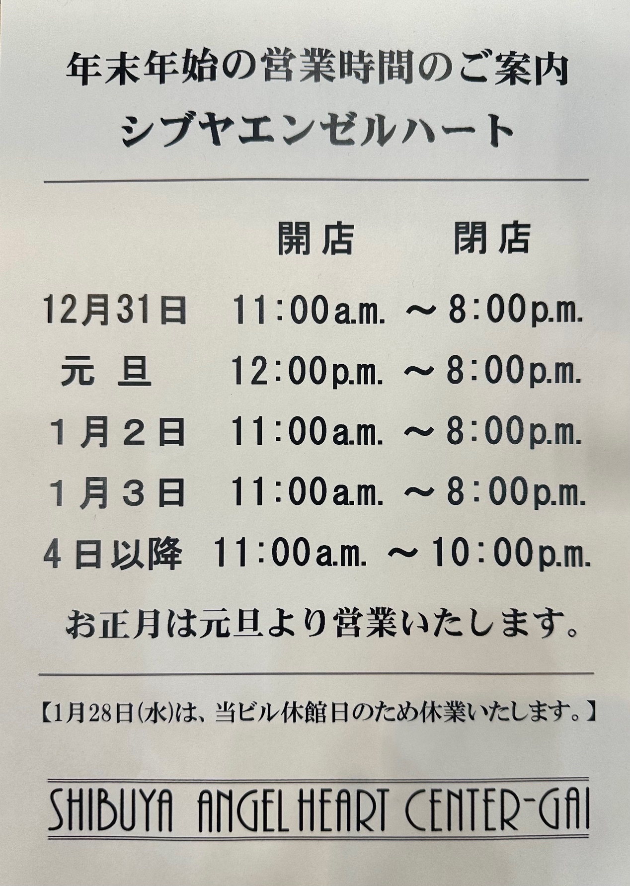 年末年始の営業時間ご案内[2024-12-21]
